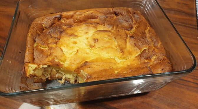 • De geschilde appels in stukjes snijden Eventueel op smaak brengen met kaneel en suiker. Appels verdelen over de bodem van een ingevette ovenschaal.