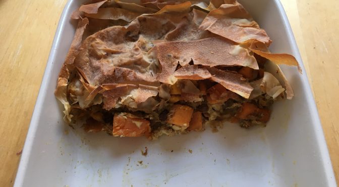 Marokkaanse quiche met tonijn, rozijnen en pompoen