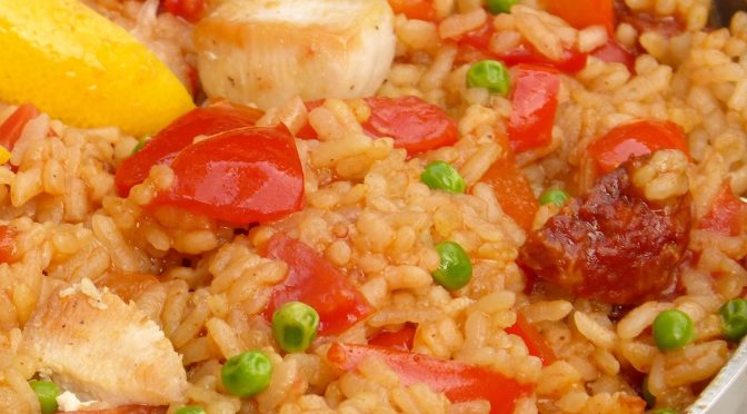 Voeg de chorizo bij de paella als paella gaar is