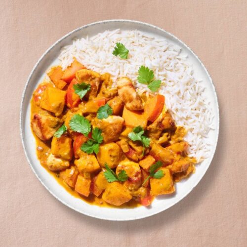 - Bak de kip in een aparte pan en voeg dit toe aan de rest zodra de pompoen goed gaar is.Zodra alles samengevoegd is roer je de roomboter door de saus (het gerecht heet niet voor niets ' Butter Chicken' 😉 ). Breng op smaak met peper & zout en garneer eventueel met wat blaadjes koriander. Serveren met rijst en NaanbroodEet smakelijk!