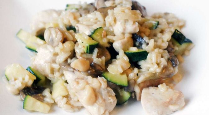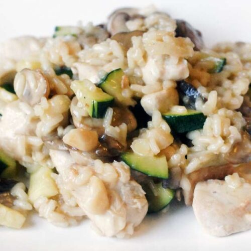 • Als de rijst gaar is, voeg je de groenten en kipfilet toe