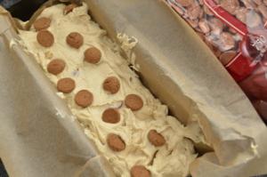 - Doe het beslag in de vorm en strooi en nog wat extra kruidnoten op.